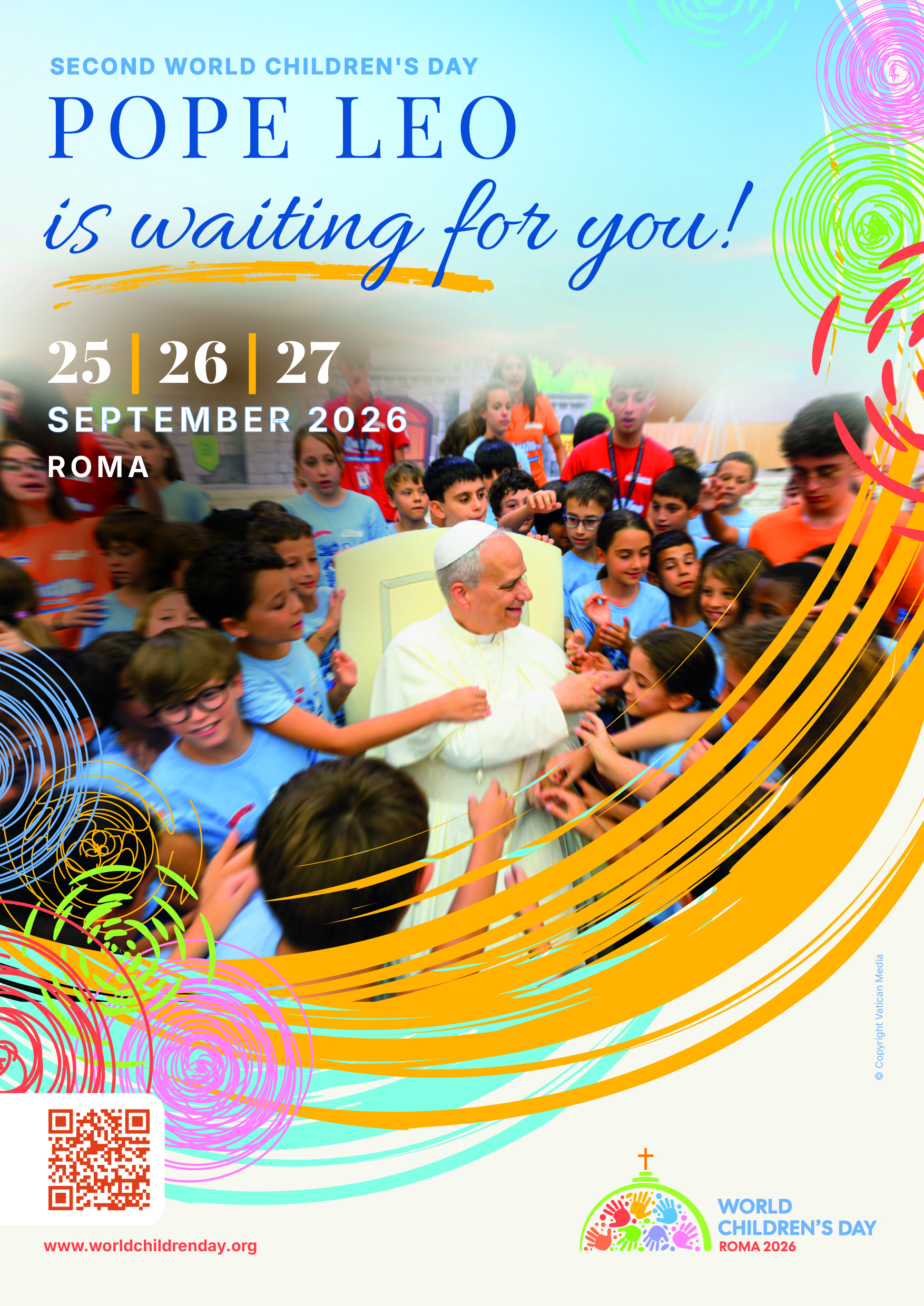 The 2nd World Children’s Day will be celebrated from September 25 to 27, 2026. Girls and boys from every corner of the earth will gather in Rome for a unique moment of celebration, joyfully open to encounter and sharing. An event of faith, filled with reflection, spirituality, and prayer, crossing continents to give voice to the children of the world, beyond all borders, without barriers or prejudice.